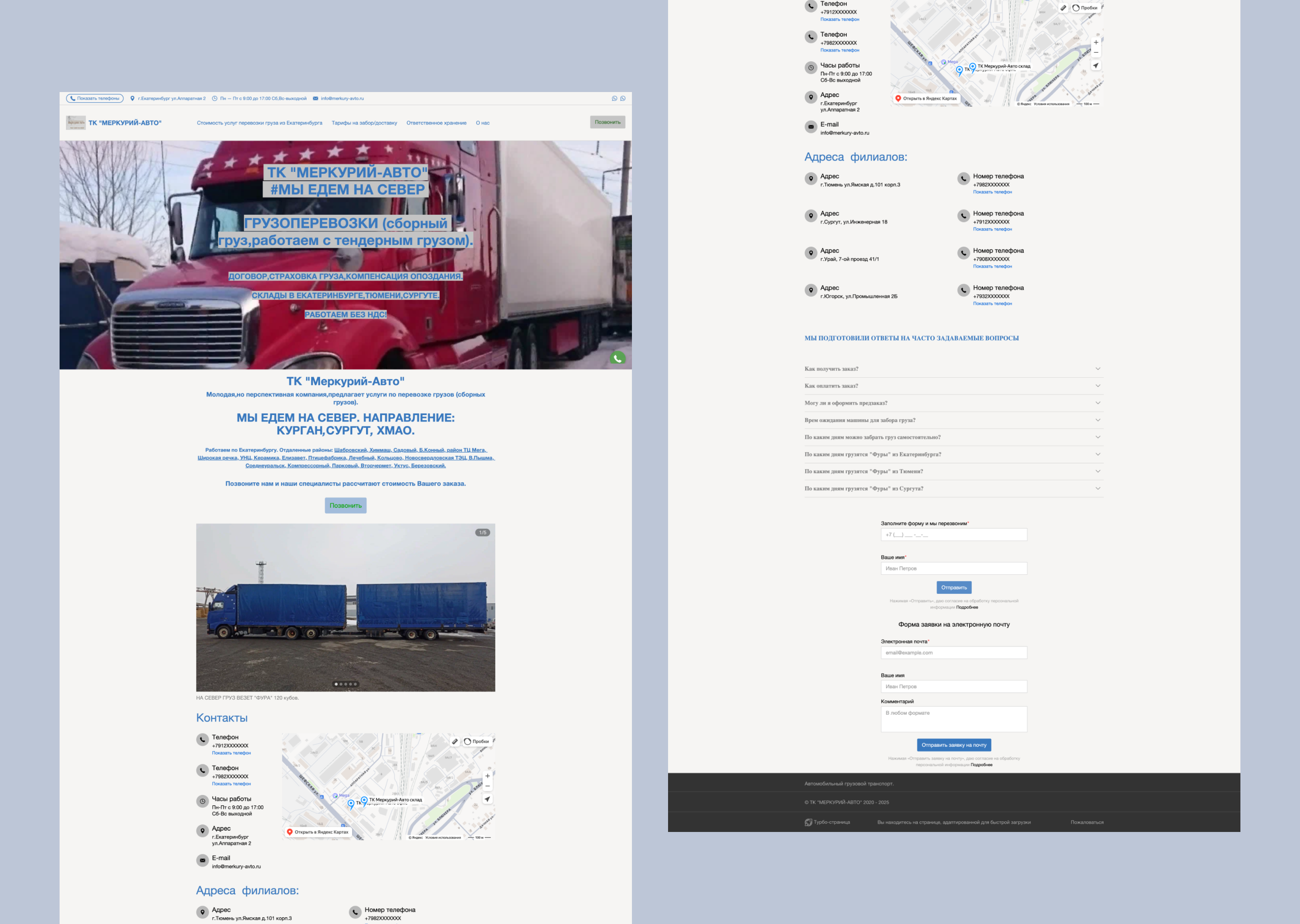 Перспективная и надёжная компания «Меркурий-Авто» переросла скромный стиль своей турбо-страницы в Яндексе. И уже готова шагнуть в мир серьёзного большого бизнеса грузоперевозок, поэтому пришли в BLOT.PRO с конкретным запросом: